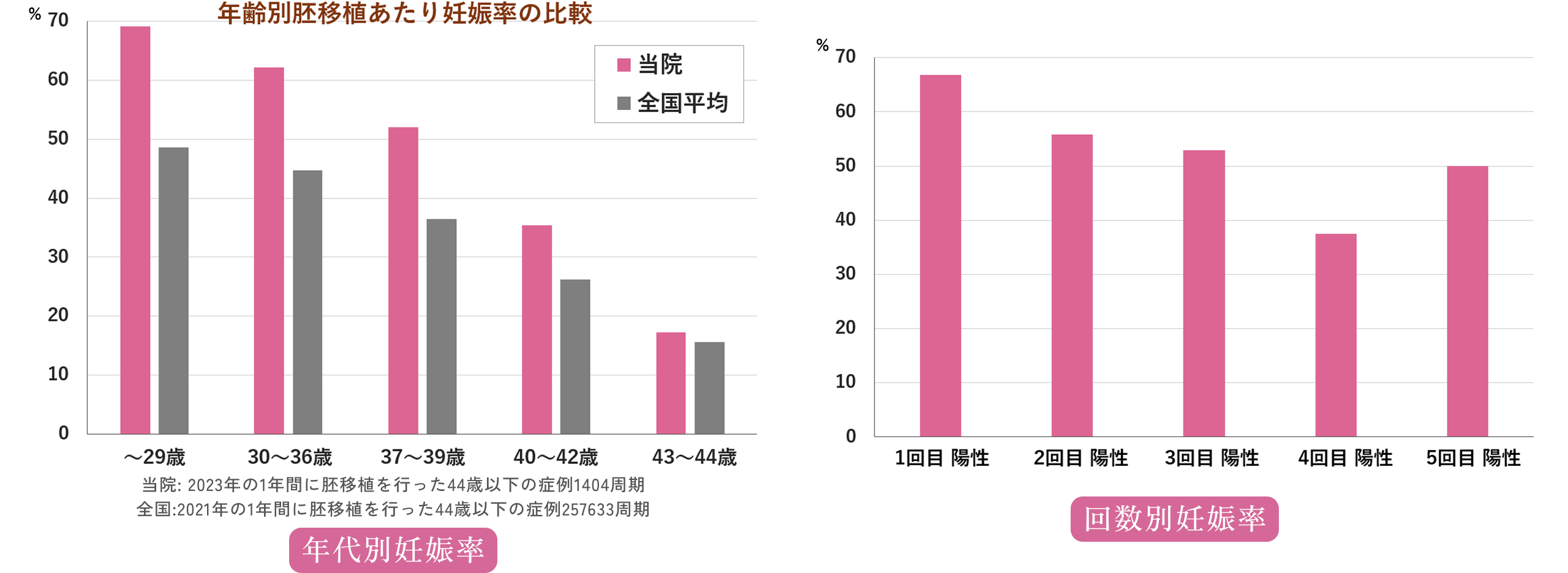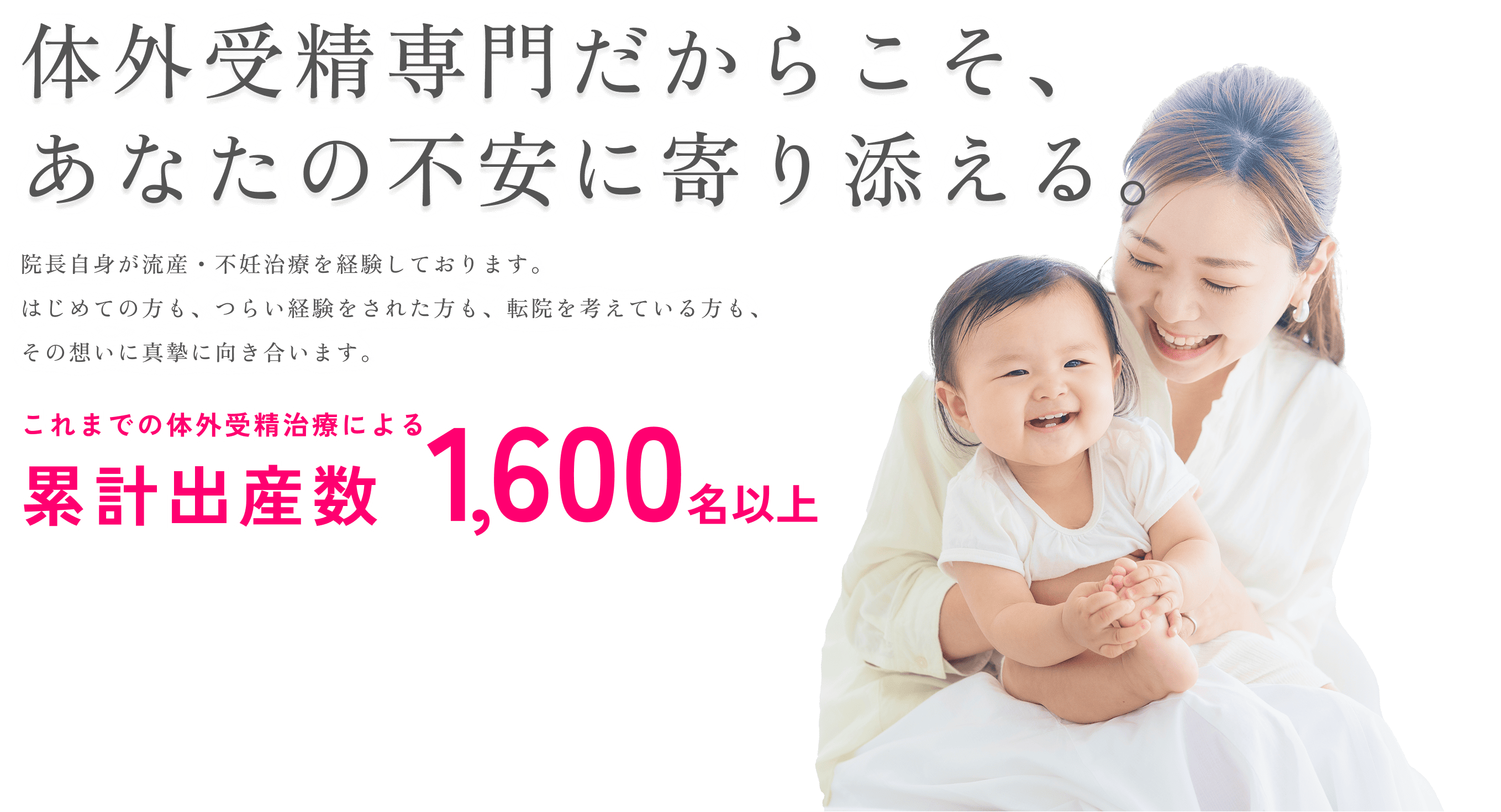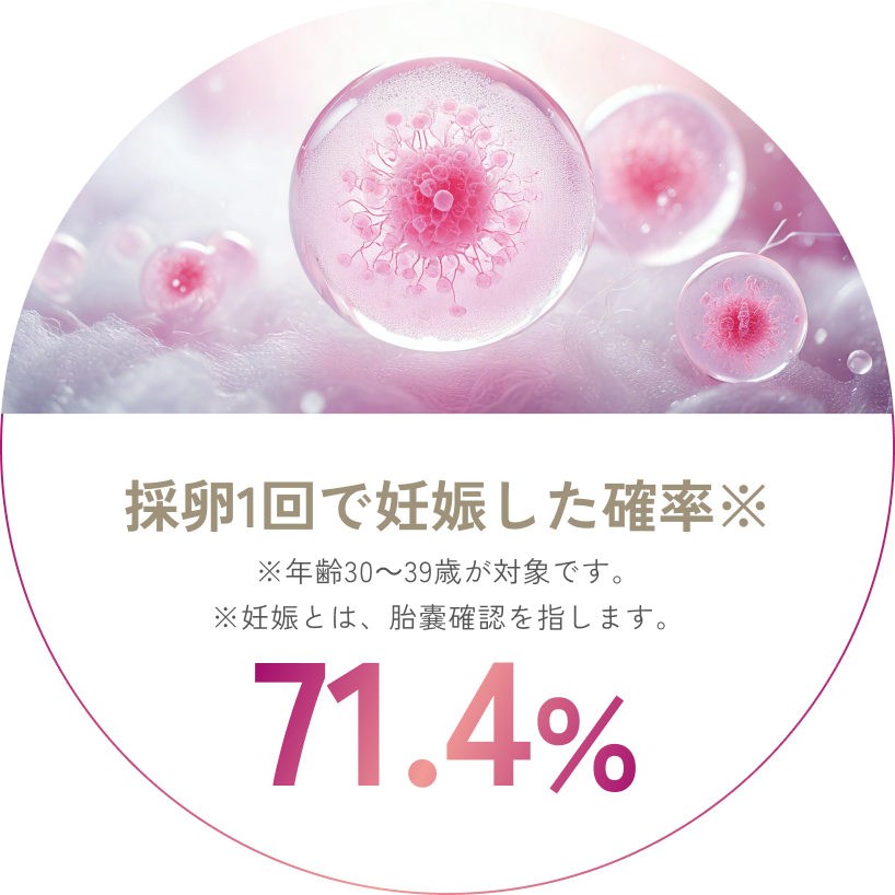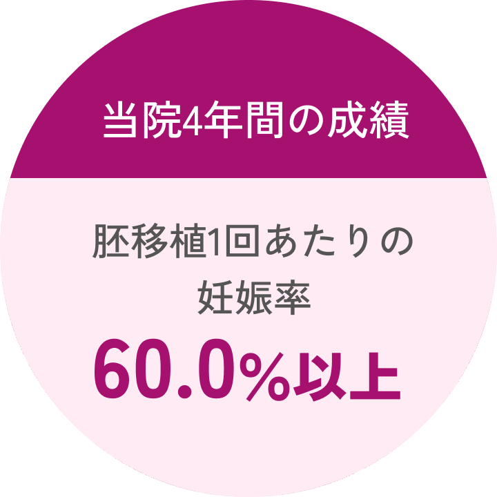 これまでに1,600名以上の妊娠をサポート。体外受精専門だからこその、胚移植1回あたり妊娠率60.0%、採卵1回で妊娠71.4%という成果をあげています。
